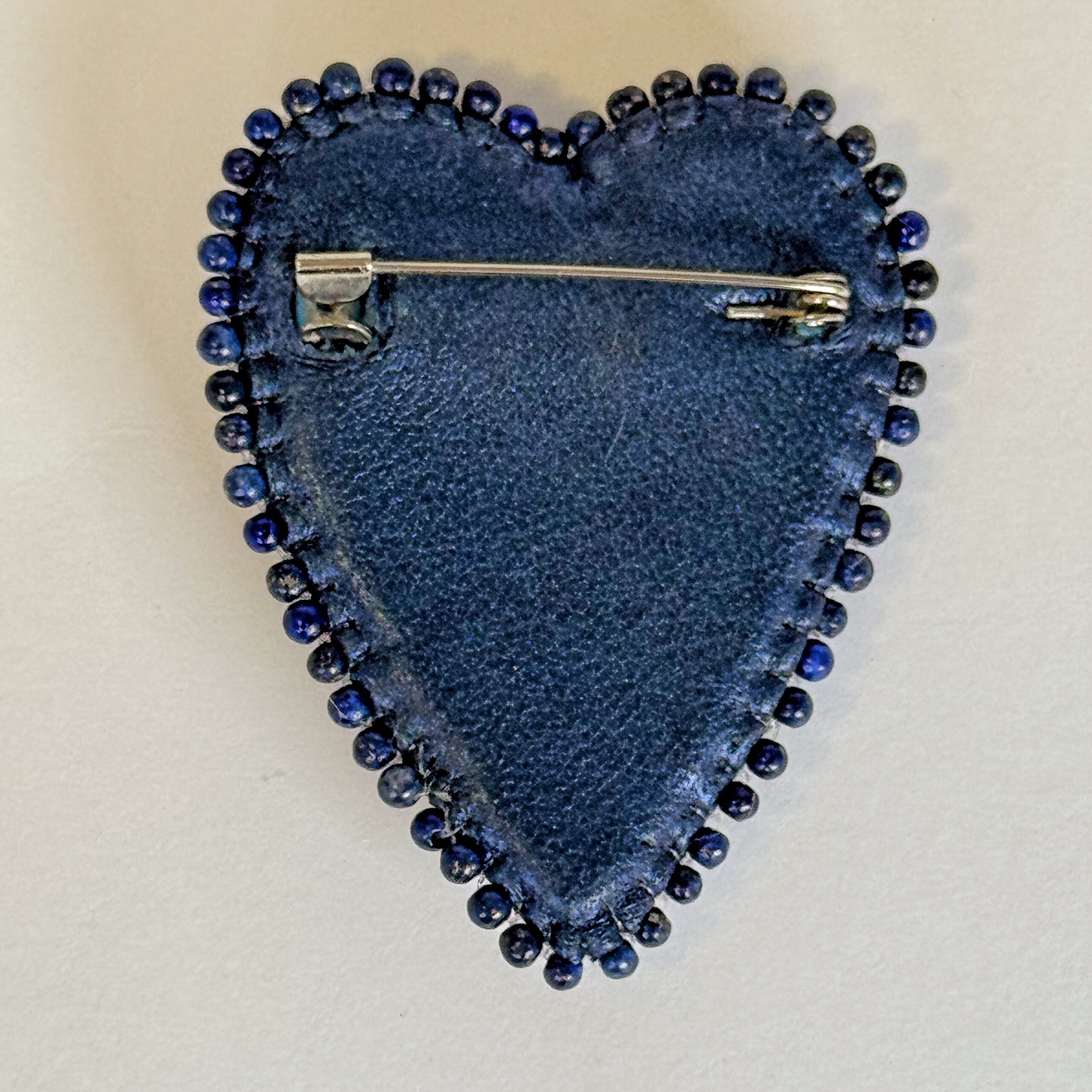 This handcrafted heart brooch features a rich Lapis Lazuli center, framed by the iridescent glow of natural Mother of Pearl. Accented with vibrant red crystals, this piece is designed for those who love jewelry with meaning and contrast. Whether it’s a gift for a loved one or a treat for yourself, this heart adds touch to any outfit.