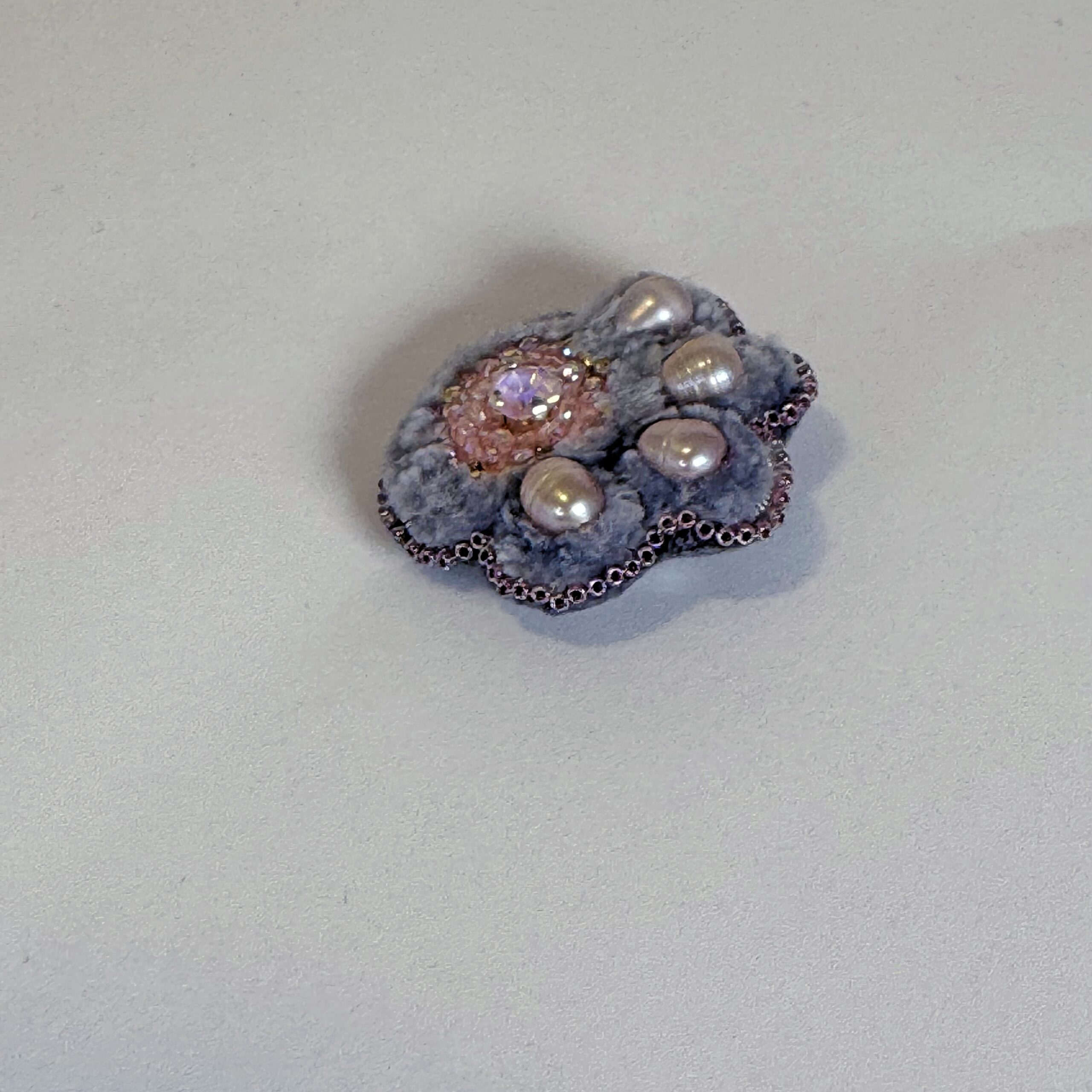 натур.жемчуг; кристаллы; бисер; жесткая канитель; нить мех.; стекл.граненные бусины; спинка -бархат; боковина -бисер; замок -